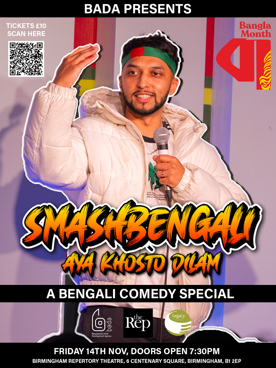Hosted by the charismatic Hashu, better known as “SMASHBengali” – comedian, TV personality, and BBC Asian Network presenter – this electrifying evening will spotlight some of the UK’s most exciting up-and-coming talent. Expect side-splitting ‘Binglish’ banter and side-splitting performances that’ll have you laughing from start to finish.